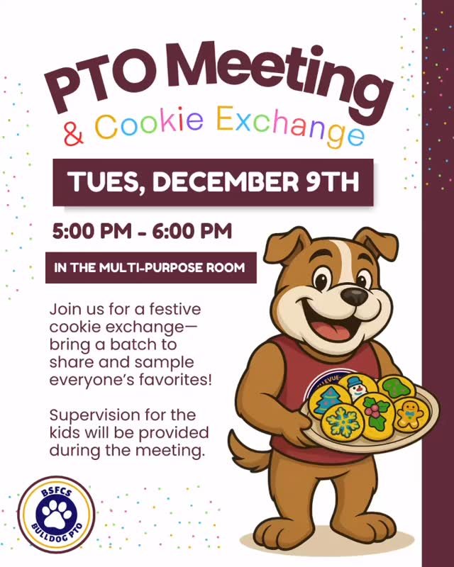 The BSFCS PTO holds a minimum of 5 regular meetings per year at a time and place determined by the board. Meetings are announced beforehand in the PTO Buzz.