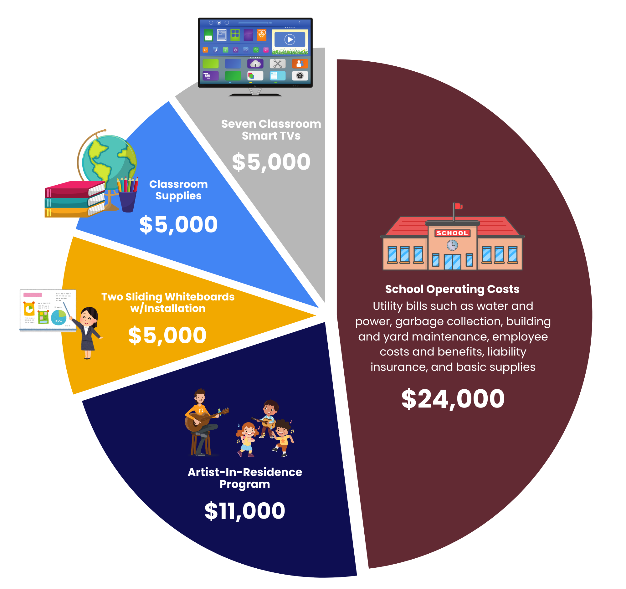 Your support is vital in bridging the financial gap, enabling us to maintain essential school operations, fund school improvements, and offer unique programs that make our school special.